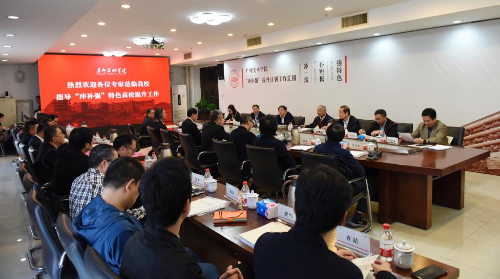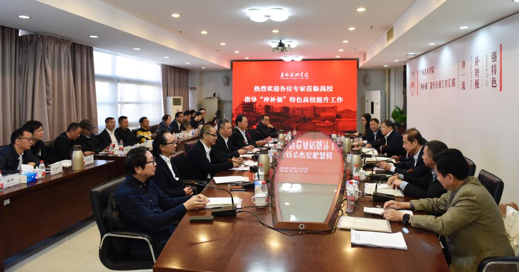 11月20日,由广东省教育厅科研处处长、学位办主任欧阳谦带队的广东省教育厅“冲一流、补短板、强特色”建设委员会专家组莅临我校开展特色高校提升计划专项指导工作,中山大学原党委书记李延保担任专家组组长,上海外国语大学原校长曹德明、安徽大学纪委书记王忠、东南大学艺术学院院长王廷信、合肥工业大学研究生院副院长陈从贵担任组员。学校党委书记谢昌晶,院长李劲堃,副院长范勃、蔡拥华,学科带头人、各职能部门及二级学院负责人出席汇报会。谢昌晶主持。
