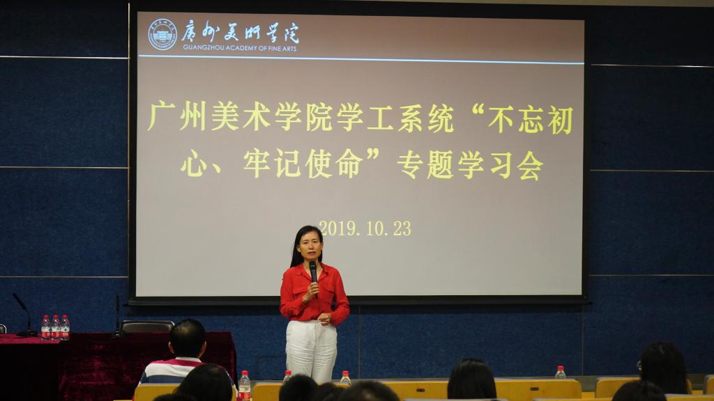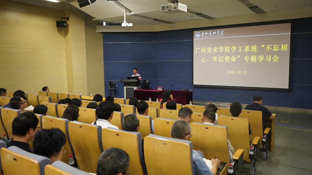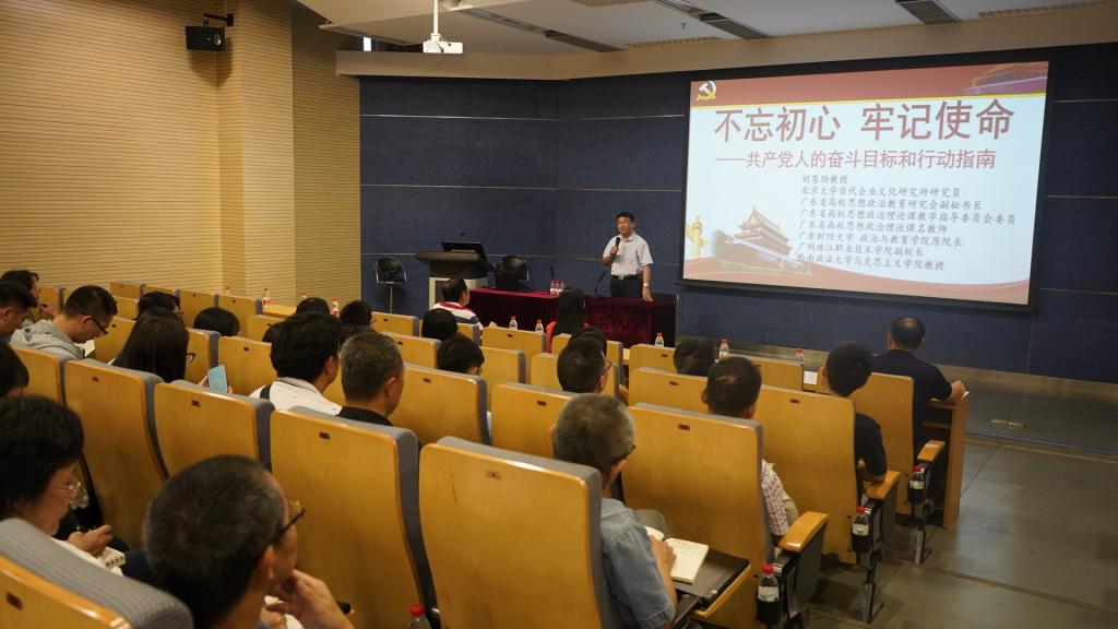 10月23日下午,我校学工系统在大学城校区J栋101课室召开“不忘初心、牢记使命”主题教育学习会,邀请广东省高校思想政治教育研究会副秘书长、广东省高校思想政治理论课名教师刘苍劲教授作“不忘初心、牢记使命”主题辅导讲座。学校党委副书记、纪委书记穆林,学生处、团委、马克思主义学院及各二级学院有关负责人、学工干部、教师参加学习,学生处处长林胜主持。