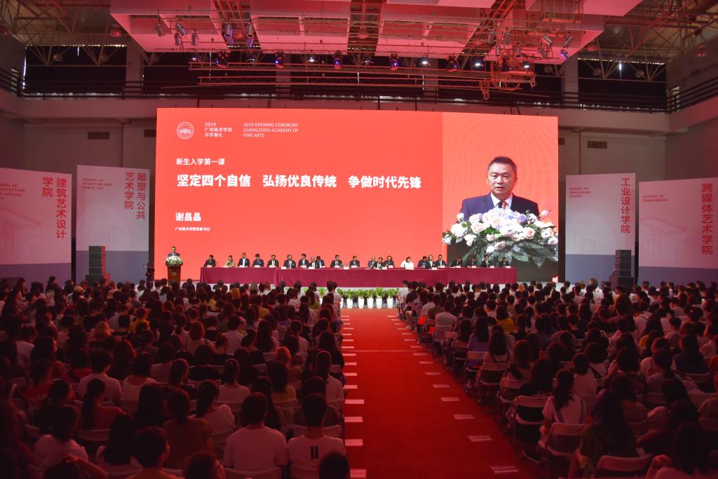 谢昌晶以“坚定四个自信,弘扬优良传统,争做时代先锋”为主题,通过回顾总结中国近现代史、中国共产党史、新中国成立70年来的辉煌成就等内容,为学生们深入浅出讲解了在中国共产党领导下的中国革命和建设取得的伟大成就,中国特色社会主义进入新时代。他激励学生们要深入学习习近平新时代中国特色社会主义思想,坚定道路自信、理论自信、制度自信、文化自信,共同朝着实现中华民族伟大复兴的中国梦迈进。结合习近平总书记关于社会主义文化建设重要论述和总书记对广东重要讲话、重要指示批示精神,谢昌晶勉励同学们要把握时代脉搏、聆听时代声音、讴歌时代生活,传承弘扬岭南优秀文化基因,深入生活,以人民为中心,以大美之艺绘传世之作。同时指出,同学们要传承和弘扬好从建校至今通过一代代广美人涵育出的优良传统,求真务实,守正创新,开放包容,敢为人先,关注现实,服务社会,珍惜来之不易的美好生活,以精品奉献人民,用明德引领风尚,争做时代先锋。