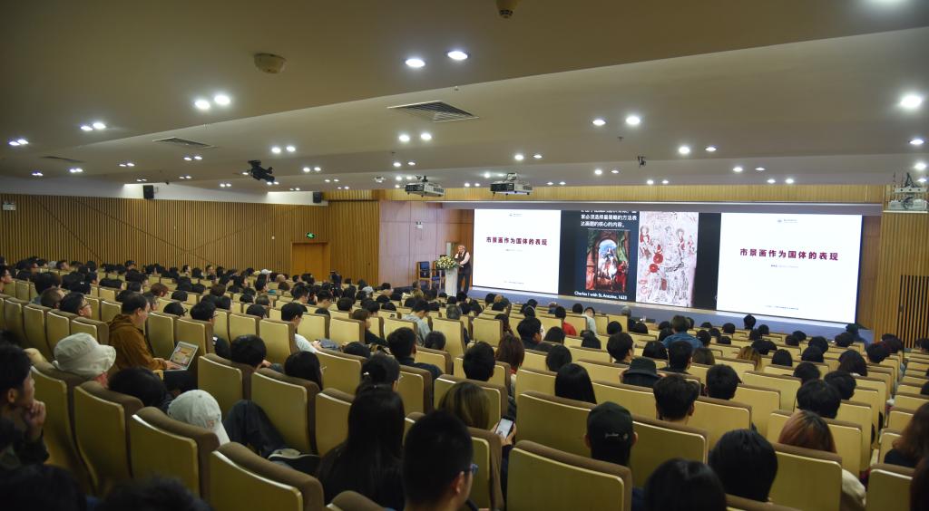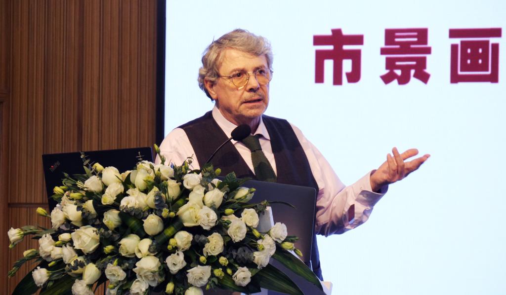 聘任仪式结束后,包华石教授为我校师生作了题为“市景画作为国体的表现”的专题讲座,讲座由尹吉男主持。