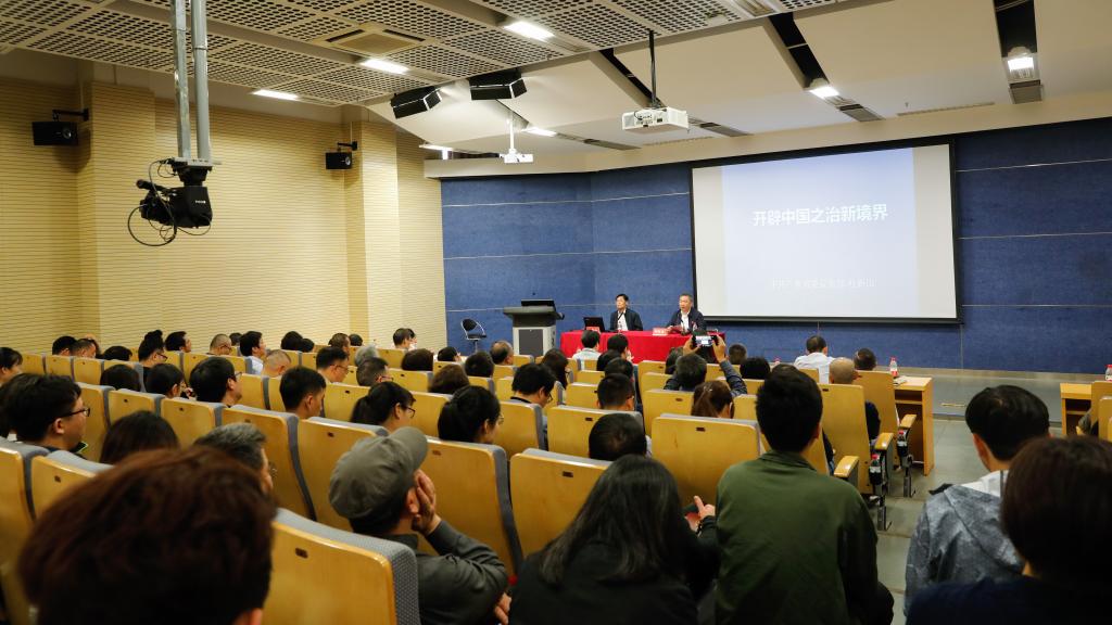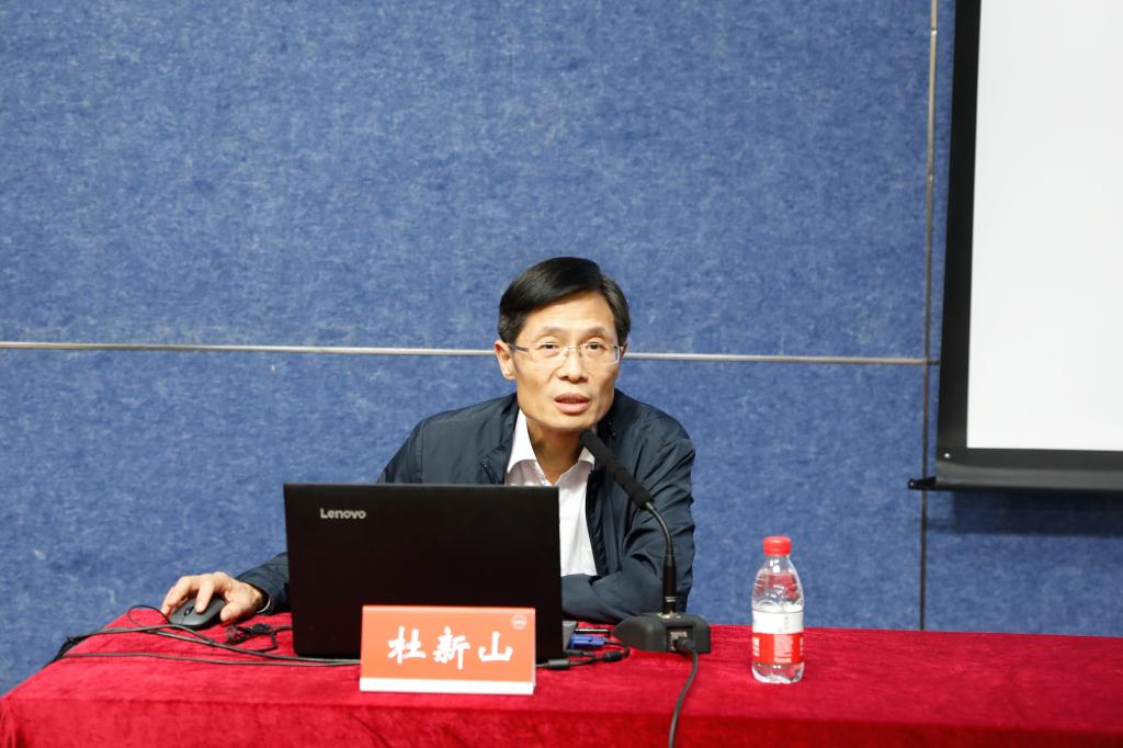 报告会上,杜新山以“开辟中国之治新境界”为题,开宗明义地点明了党的十九届四中全会的主题及其召开的重大意义。结合习近平总书记关于《中共中央关于坚持和完善中国特色社会主义制度、推进国家治理体系和治理能力现代化若干重大问题的决定》(以下简称《决定》)的说明,杜新山着重强调了中央全会专题研究坚持和完善中国特色社会主义制度、推进国家治理体系和治理能力现代化问题几个方面的考虑,深刻分析了坚持和完善中国特色社会主义制度在各方面必须坚持的根本制度、基本制度、重要制度及总体目标的具体内容。他通过列数据、摆事实、释理论以及古今中外纵横对比,条理清晰、生动形象地分析了中国特色社会主义制度的优越性,阐明了把我国制度优势更好转化为国家治理效能的路径。