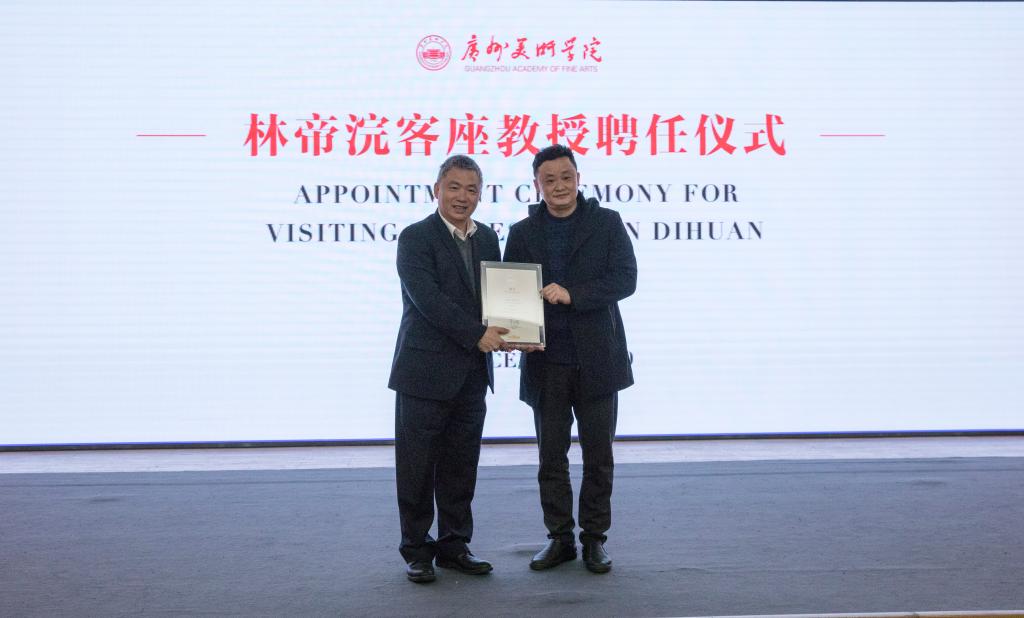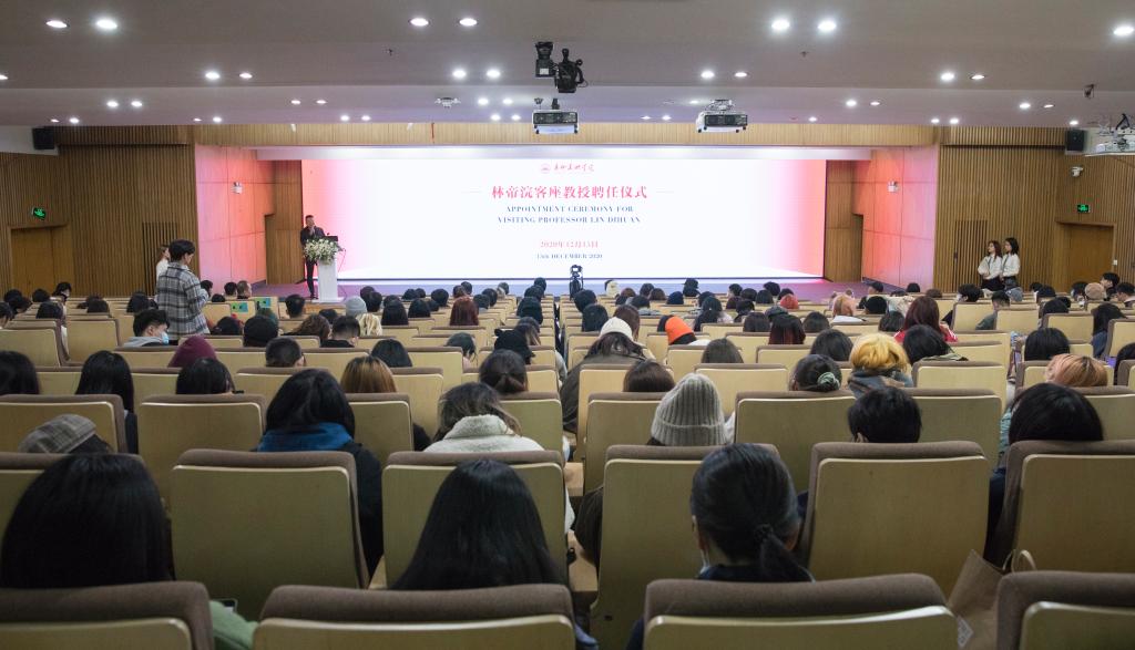 12月15日下午,我校在昌岗校区国际学术报告厅举行林帝浣客座教授聘任仪式。学校党委书记谢昌晶,党政办主任、统战部部长李金水,人事处处长宋光智,视觉艺术设计学院党总支书记罗培庆、院长曹雪、副院长陈少明,以及视觉艺术设计学院师生代表300余人参加了聘任仪式。谢昌晶为林帝浣颁发客座教授聘书。宋光智主持仪式。