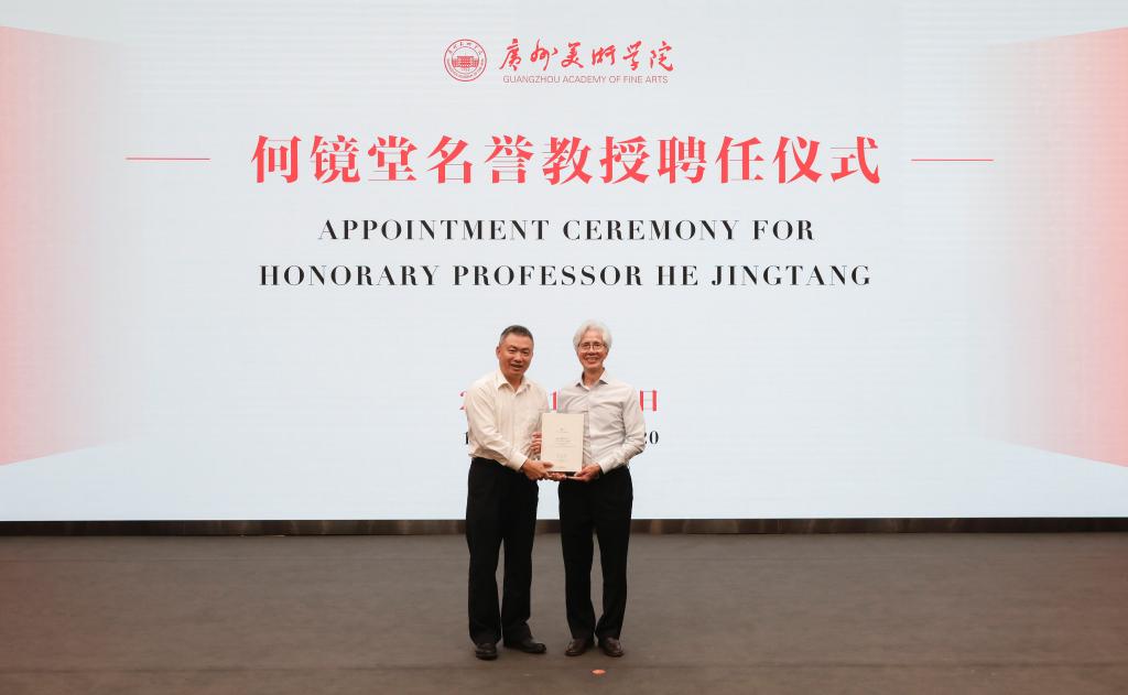 10月15日下午,我校在大学城校区举行何镜堂名誉教授聘任仪式。中国工程院院士、华南理工大学建筑学院名誉院长、建筑设计研究院首席总建筑师何镜堂教授,乐竞在线注册(中国)有限公司党委书记谢昌晶、院长李劲堃,党委副书记黄启明、穆林,副院长范勃、蔡拥华出席聘任仪式。学校相关职能部门负责人、各二级院系负责人、建筑艺术设计学院师生参加了聘任仪式。谢昌晶为何镜堂院士颁发名誉教授聘书。仪式由范勃主持。