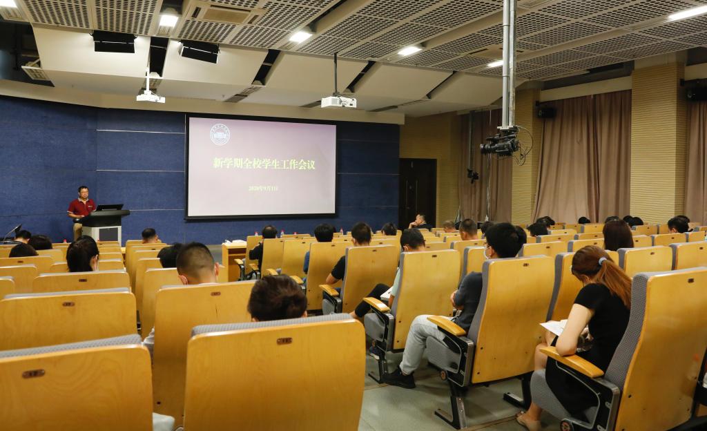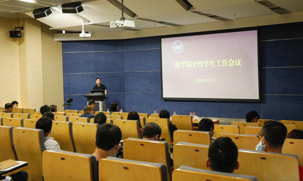 9月1日下午,学校召开新学期学生工作会议,校党委副书记、纪委书记穆林,学生处处长林胜,团委书记何周宇以及各学院党总支书记、专职副书记、全体辅导员、学生处和团委学工干部参加了学习会议。会议由林胜主持。