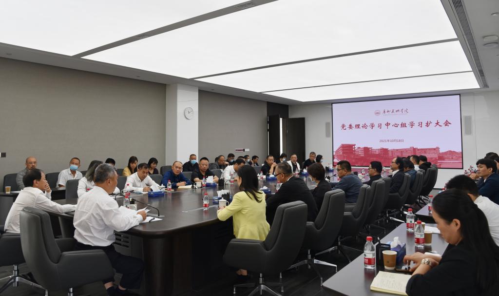 10月18日上午,学校在大学城校区召开党委理论学习中心组学习扩大会,深入学习中央人才工作会议精神,学校党委书记谢昌晶,院长李劲堃,党委副书记穆林,副院长范勃、蔡拥华,党委理论学习中心组成员、二级教学单位党政负责人等参加会议。谢昌晶主持会议。