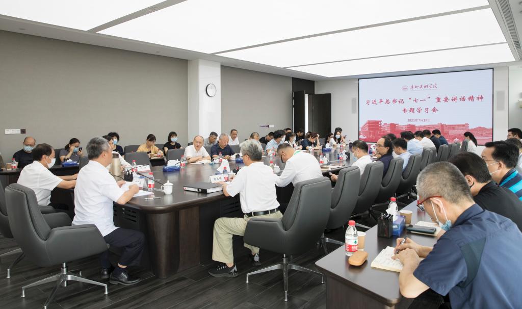 7月16日上午,我校在大学城校区702会议室召开学习习近平总书记在庆祝中国共产党成立100周年大会上重要讲话精神专题学习会。学校领导、党委理论学习中心组成员、各职能部门负责人、二级教学单位党政负责人参加会议。会上,院长李劲堃及党委组织部、纪委办、教务处、校团委、宣传部等部门负责人结合个人自学和实际工作谈了学习体会。学校党委书记谢昌晶主持。