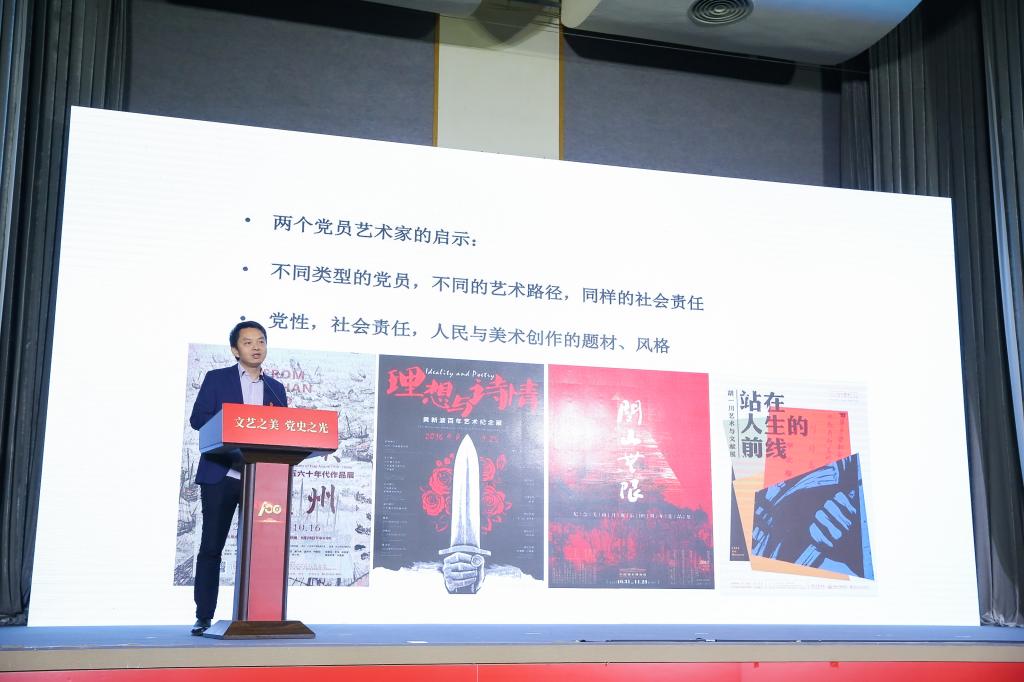 胡斌以“党性与美术创作”为题分享了和乐竞在线注册(中国)有限公司建校历程密切相关的两个党员艺术家——胡一川和关山月的故事。他表示,通过两个党员艺术家不同的成长历程可以看到,虽然他们的艺术背景不一样、创作媒介不一样,但是在20世纪中国都承担起重要的社会责任。基于“以人民为中心”的立场,基于对我们党的性质和文艺思想的认识,积极推进自己的艺术取向、风格、题材与社会现实、社会责任的关联,最终成为被刻写在20世纪中国美术史上的一代大家。近些年,乐竞在线注册(中国)有限公司以及学院美术馆不断推进对于这些重要艺术家以及重要艺术现象的梳理和展示,比如在国博展出的“关山无限:纪念关山月诞辰105周年作品展”,在央美美术馆展出的“站在人生的前线:胡一川艺术与文献展”等,均获得热烈反响。如何将讲好这些革命艺术家的故事,讲好我们学校的故事与党史的学习联系起来,将是一项重要的工作。