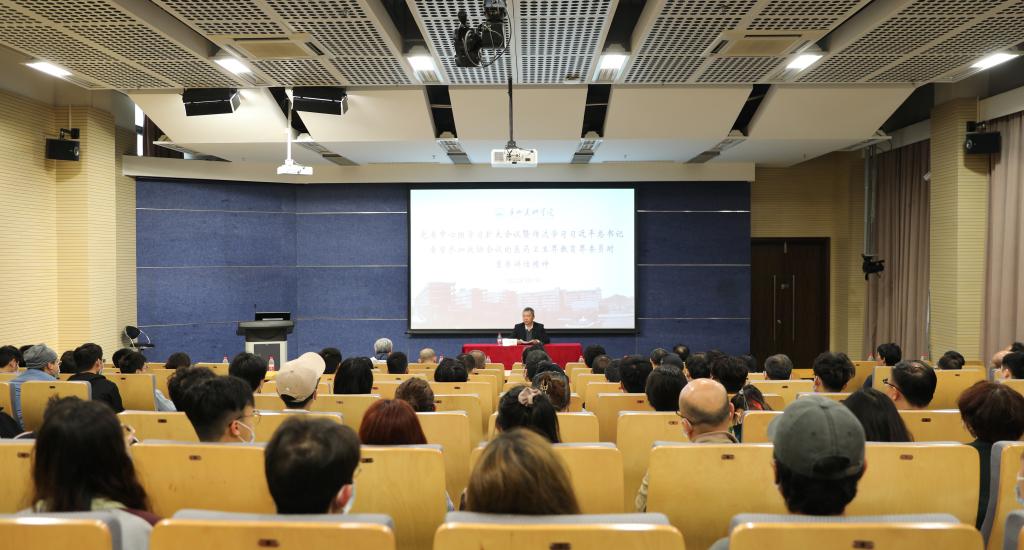 会上,谢昌晶传达了习近平总书记看望参加政协会议的医药卫生界教育界委员时的重要讲话精神,并结合学校实际进行了工作部署:一是各党总支、直属党支部,各部门、各单位要认真学习、深刻领会习近平总书记看望参加政协会议的医药卫生界教育界委员时重要讲话精神的丰富内涵和重大意义,把学习习近平总书记重要讲话精神作为当前和今后一个时期的一项重要政治任务,通过党支部会、教职工政治理论学习会等多种形式,认真组织师生开展学习,深刻领会讲话精神实质,自觉把思想和行动统一到总书记对教育领域的殷切期盼上来,以扎扎实实的工作推进教育改革发展。二是抓好关键环节和重点领域,努力推动我校教育工作迈上新台阶。要坚持立德树人根本任务,把握正确办学方向,贯彻落实全国教育大会关于高等教育工作的重要决策部署,深化学校教学改革,进一步加强学科建设工作,进一步加强师德建设和教风学风建设,“以人民为中心”积极投身文化建设。三是以学习贯彻习近平总书记看望参加政协会议的医药卫生界教育界委员时的重要讲话精神为契机,持续发力,加快推动学校各项事业改革发展。要进一步加强学校干部队伍、人才培养、科研创作、师资队伍、社会服务等方面建设工作,鼓足干劲,团结奋进,为推进新时代教育改革发展,落实立德树人根本任务,培养德智体美劳全面发展的社会主义建设者和接班人,为广东在全面建设社会主义现代化国家新征程中走在全国前列、创造新的辉煌作出新的更大贡献,以优异成绩庆祝中国共产党成立100周年!
