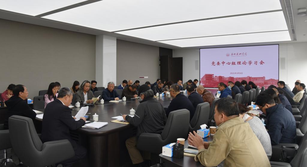 3月3日上午,学校在大学城校区召开党委中心组学习会,传达学习习近平总书记重要讲话精神,学校党委书记谢昌晶,院长李劲堃,党委副书记黄启明、穆林,副院长范勃、蔡拥华,党委中心组成员参加会议。谢昌晶主持。