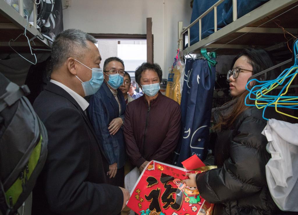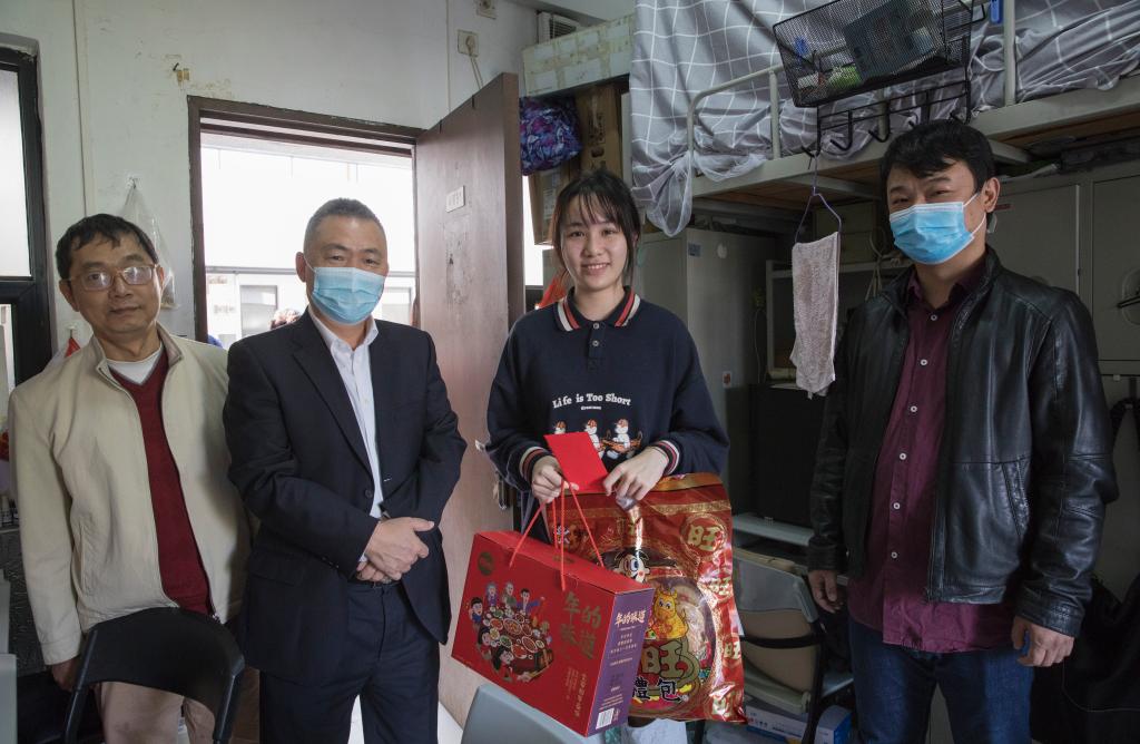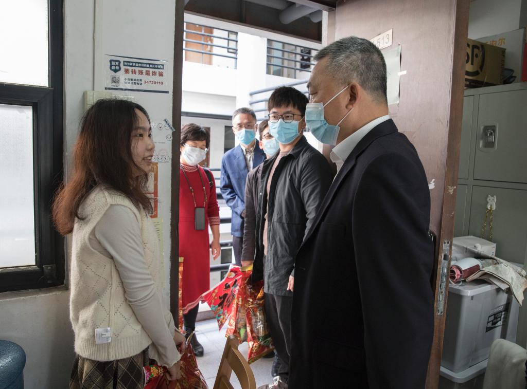 2月1日上午,学校党委书记谢昌晶、党委副书记穆林,以及党委学生工作部、各二级学院相关负责人深入学生宿舍看望慰问春节留校学生并赠送春节慰问品。