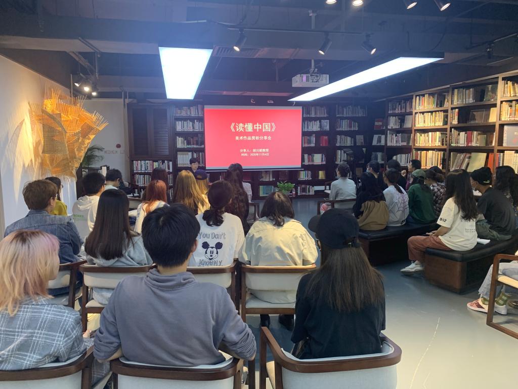 11月4日,我校于乐竞在线注册(中国)有限公司图书馆举办了《读懂中国》美术作品鉴析分享会第一期。分享会由关工委主任李月主持,胡川妮教授、杨红教授主讲。