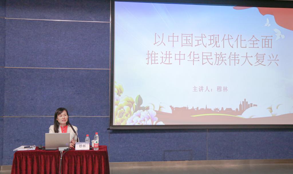 随后,穆林为学员们讲授了“以中国式现代化全面推进中华民族伟大复兴”为题的第一课。她带领大家学习了党的二十大报告中关于中国式现代化的论述,详细阐述中国式现代化的历史进程,分析了大力推进中国式现代化面对的复杂国际国内背景,着重阐释中国式现代化的中国特色、本质要求以及实现中国式现代化宏伟战略需要正确处理好的若干重大关系。最后,她强调要铸强中国式现代化的精神力量,勉励同学们要努力学习,以实现中华民族伟大复兴为己任,在推进中国式现代化建设过程中锻造更好的自我,谱写青春华章。