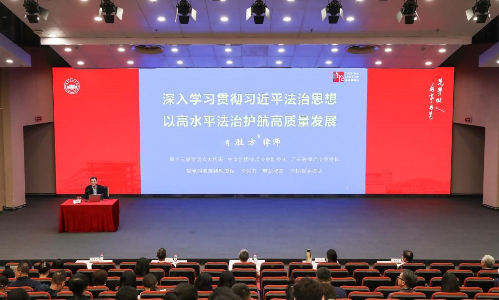为深入贯彻落实党的二十大精神,坚持和完善中国特色社会主义教育制度体系,进一步加强学校的法治工作,推进高等学校治理体系和治理能力现代化,全面推进依法治教、依法办学、依法治校, 3月17下午,学校邀请广东省律师协会会长、广东胜伦律师事务所主任肖胜方同志为学校师生上以“深入学习贯彻习近平法治思想以高水平法治护航高质量发展”为主题的法治教育课。学校领导,各职能部门、各二级学院负责人,教师代表及学生代表约400人到场学习。法治教育课由学校党委书记谢昌晶主持。