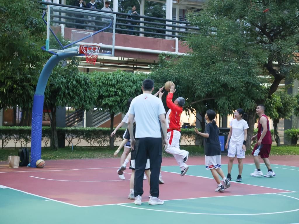 在谢昌晶书记的带领下,杜锋一行参观了校园,随后在生活区篮球场与师生篮球爱好者进行了精彩的篮球友谊赛,大家在激情与汗水中共享篮球竞技之乐,在快乐运动中强身健体,增进友谊。