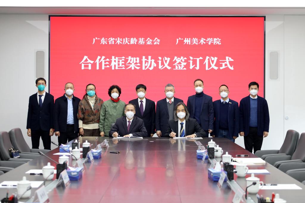 蔡拥华代表学校与省宋庆龄基金会签署合作建立粤港澳大湾区青少年美育教育基地框架协议。