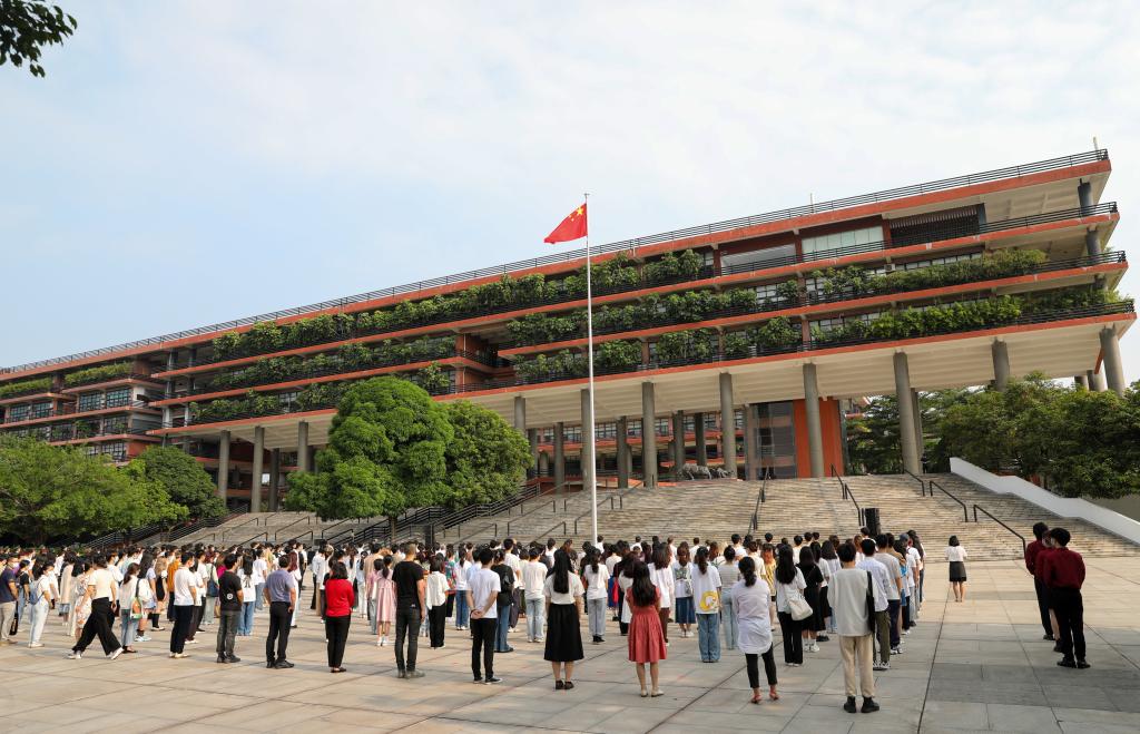 他指出,全校师生要坚持以习近平新时代中国特色社会主义思想为指导,忠诚拥护“两个确立”,不断增强“四个意识”、坚定“四个自信”,坚决做到“两个维护”,以一往无前的奋斗姿态、风雨无阻的精神状态,为广东在全面建设社会主义现代化国家新征程中走在全国前列、创造新的辉煌作出新的更大贡献,以实际行动迎接党的二十大胜利召开!