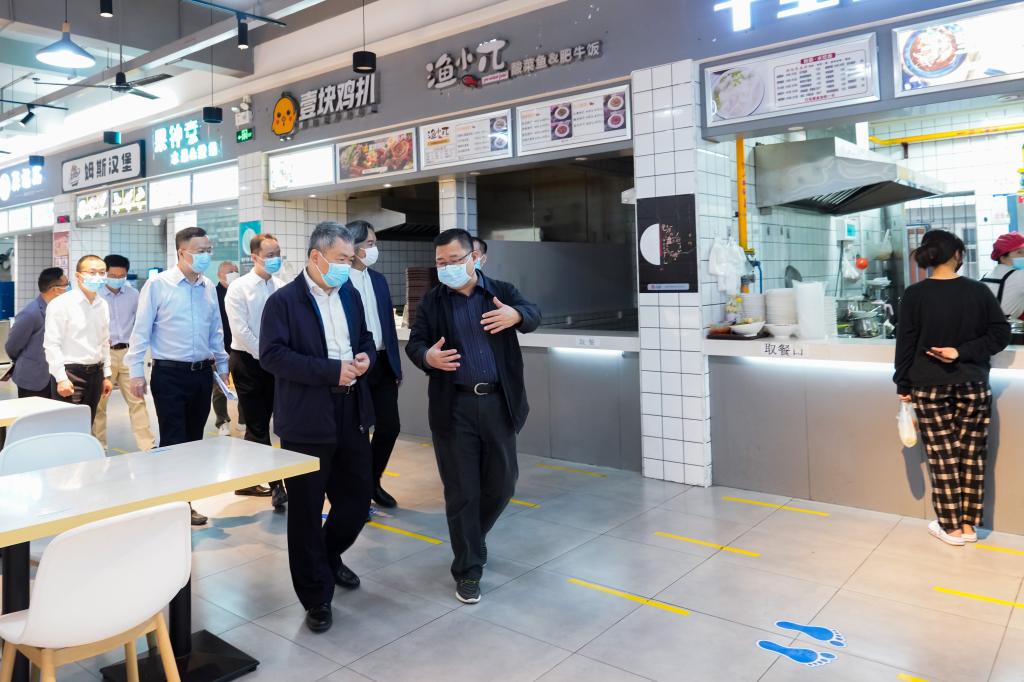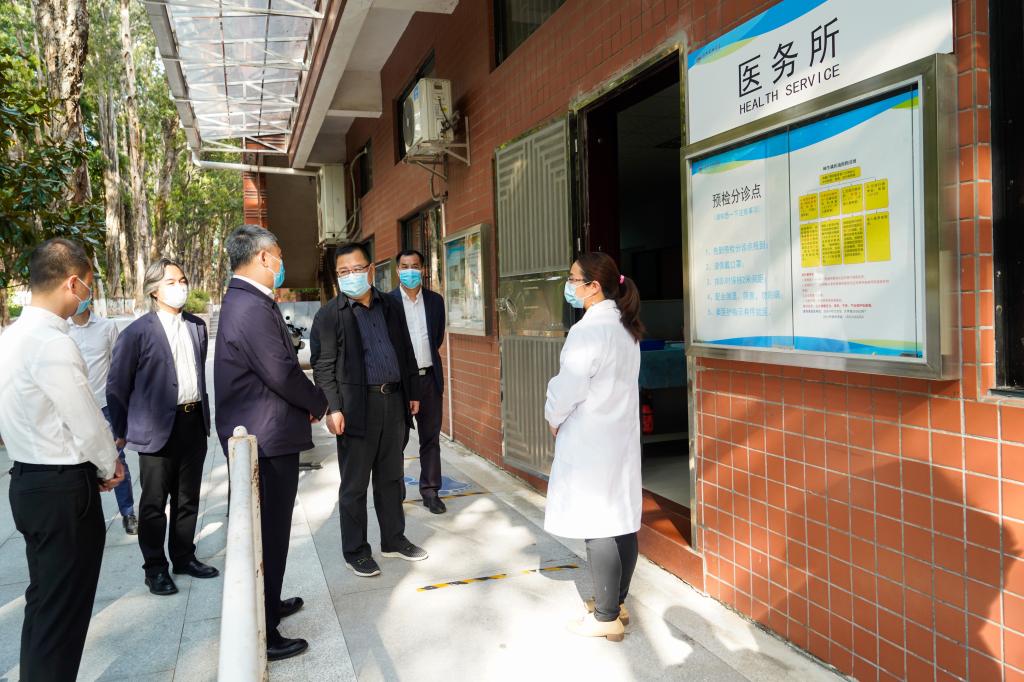 朱孔军首先查看了学校校园出入口管理情况,随后实地检查了医务室、学生宿舍、应急隔离场所、食堂等疫情防控重点场所,听取了我校关于常态化疫情防控和应急处置等方面工作的情况汇报,对我校疫情防控工作给予了肯定,并对进一步做好疫情防控工作提出了意见和要求。
