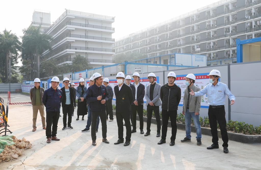 1月4日,学校院长李劲堃、副院长李金水,相关职能部门负责人及各参建单位负责人深入我校大学城校区新建宿舍工地,视察各项生产工作,并围绕施工安全、质量、工期等目标召开会议。会议由李金水主持。