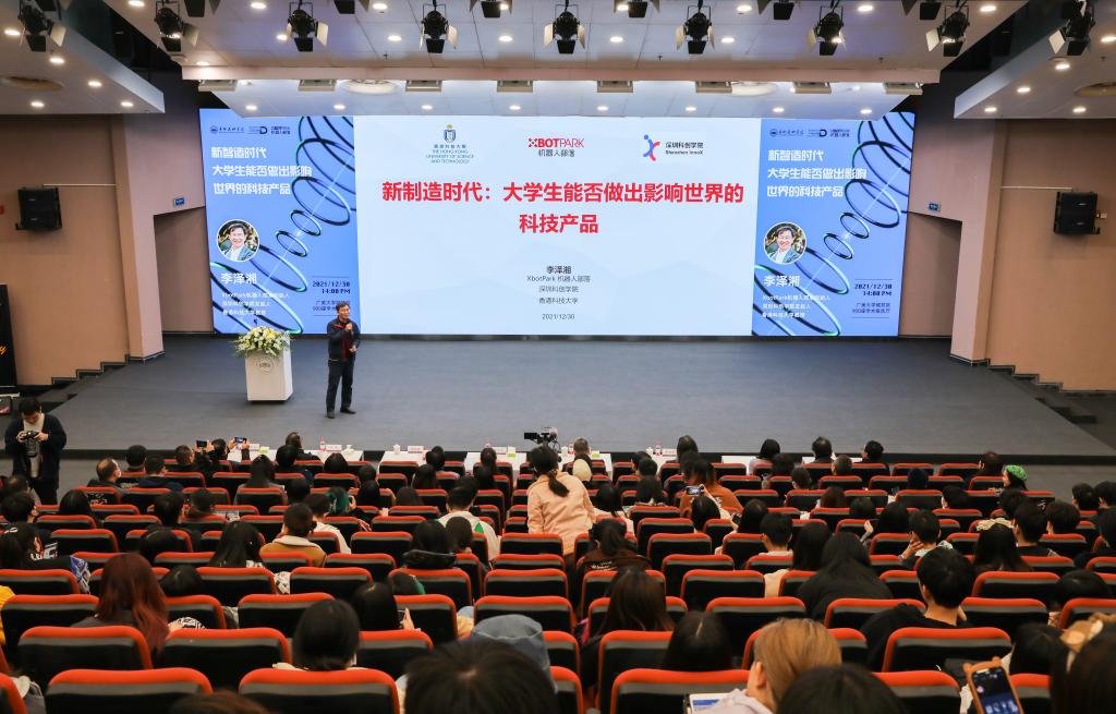 聘任仪式结束后,李泽湘为我校师生作题为“新智造时代:大学生能否做出影响世界的科技产品”的学术讲座,分享了硬科技创业秘诀,新工科教育背景下科技、艺术、人文如何融合的观点,以及端到端创业人才培养与孵化的先进经验,在场师生受益匪浅。