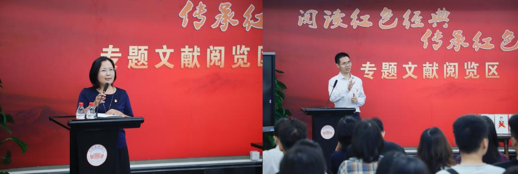 10月13日下午,我校党委宣传部、学校图书馆联合马克思主义学院党总支、绘画艺术学院党总支及雕塑与公共艺术学院党总支,在图书馆举办了“诵读红色经典,传承红色基因”党史学习教育,由图书馆党支部书记、馆长刘淑贤主持。
